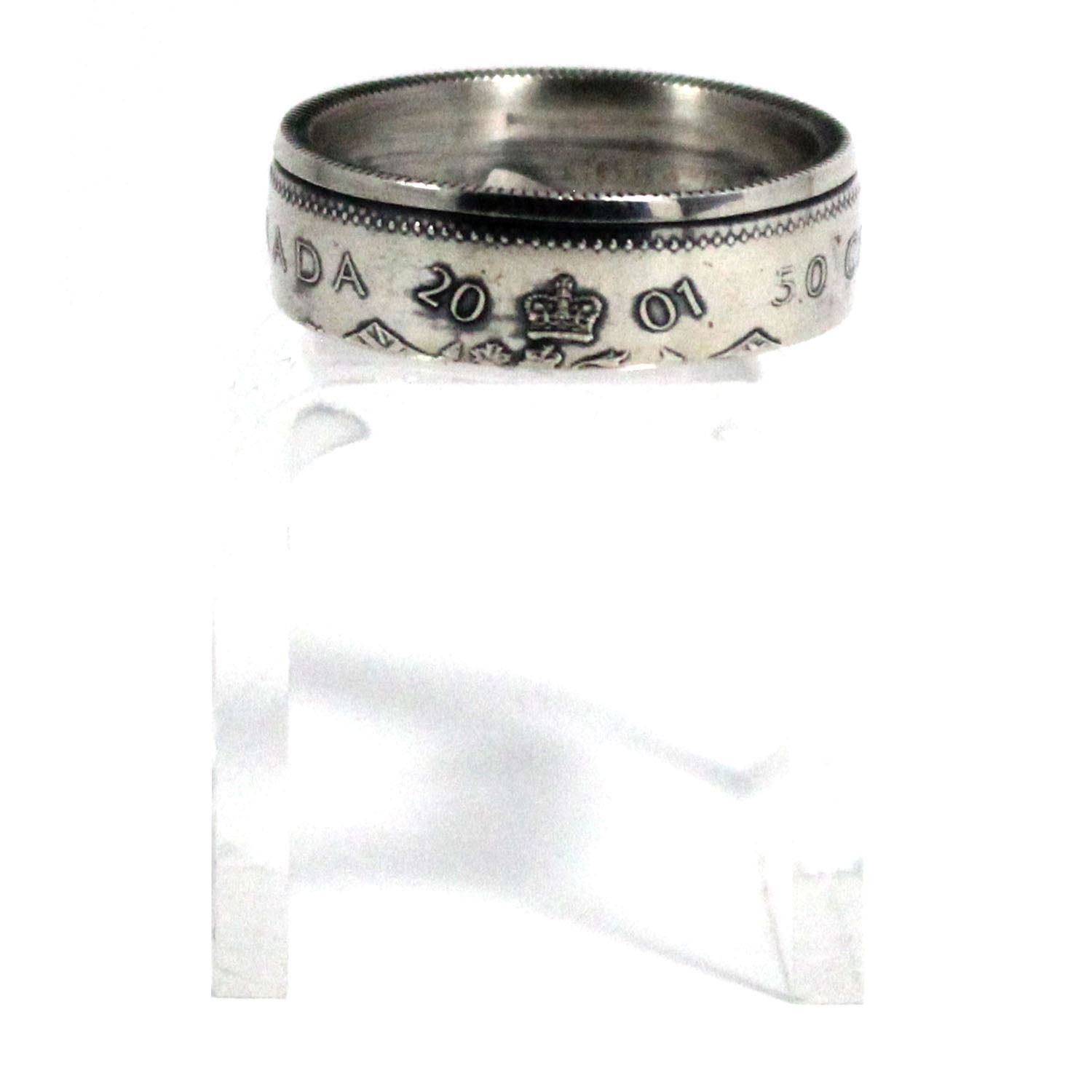 2001 Canada Silver 50-cent Coin Custom Jewellery Ring Size 10 - Made from a real 50-cent coin!