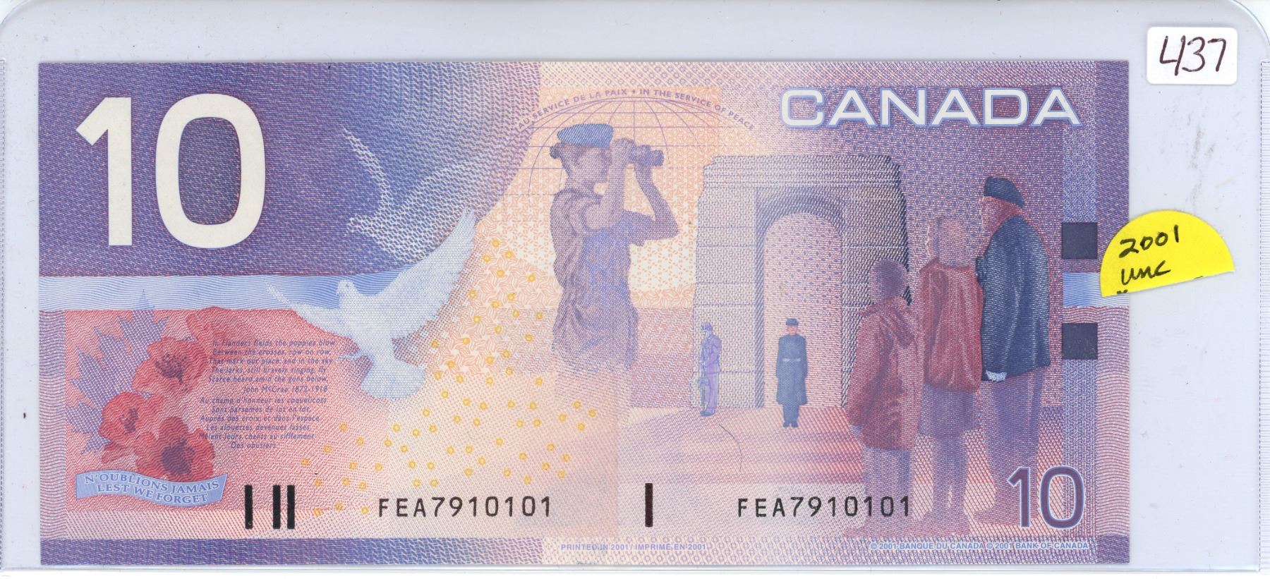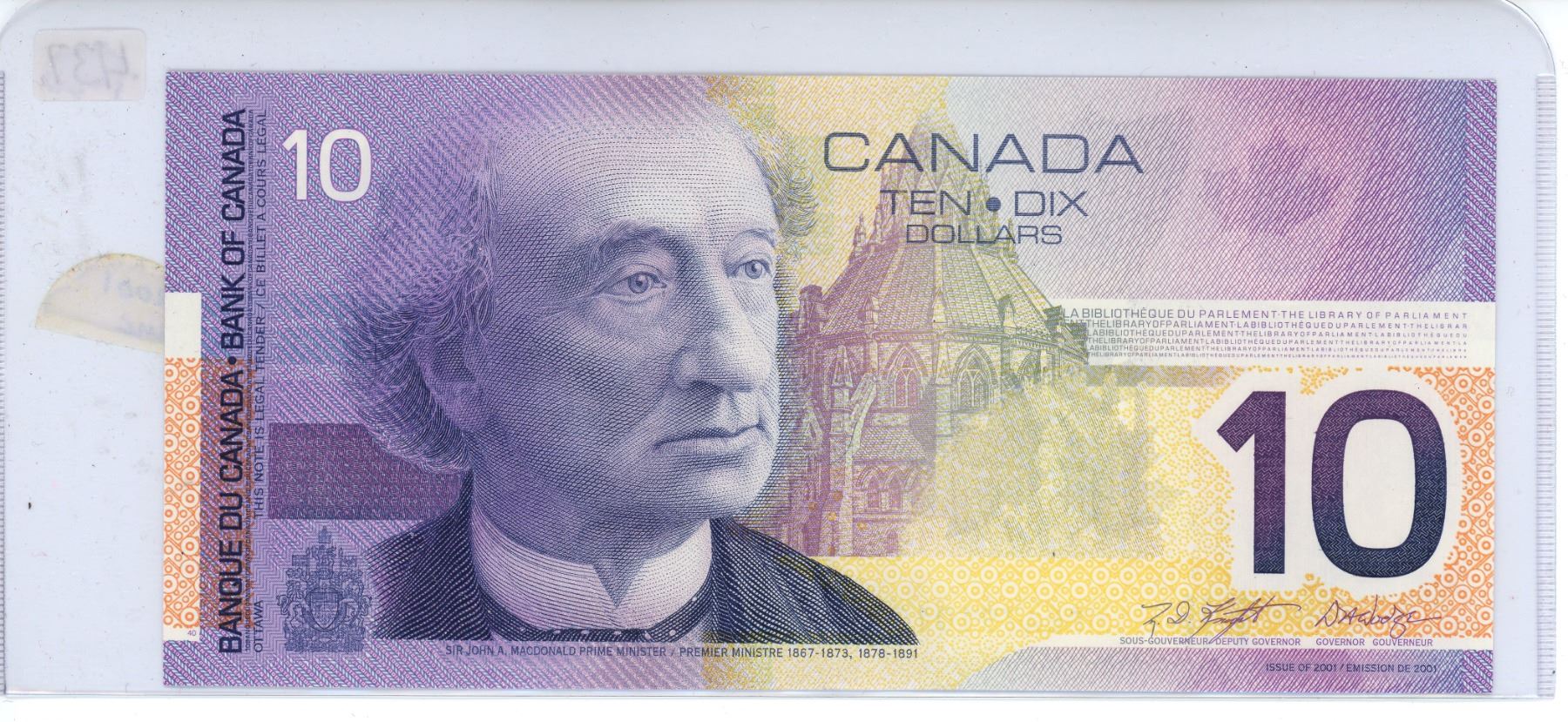 2001 Canada UNC $10 bill, Knight/Dodge, # FEA 7910101