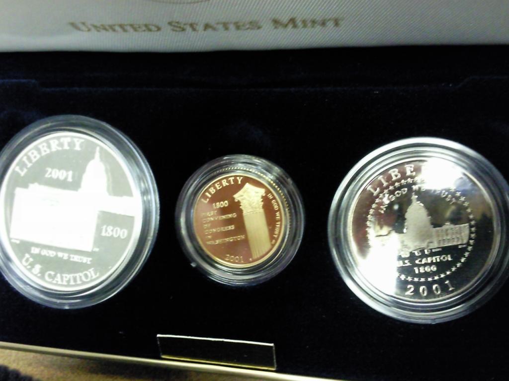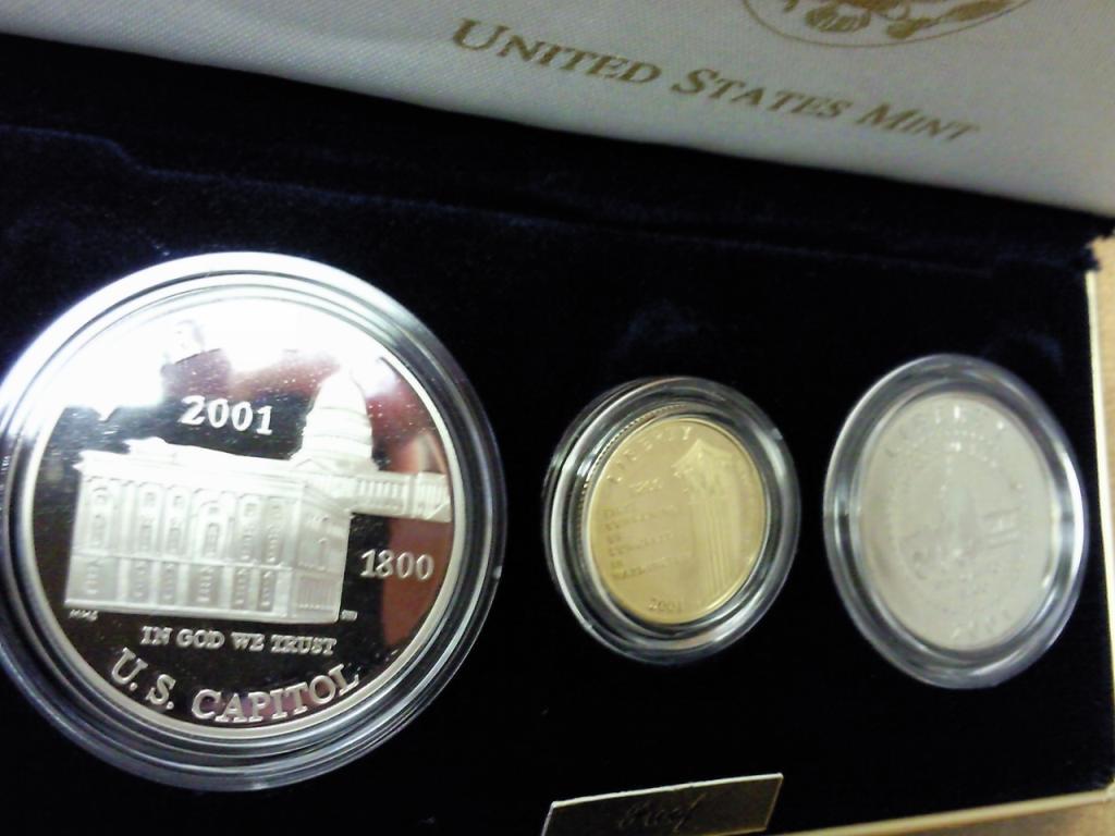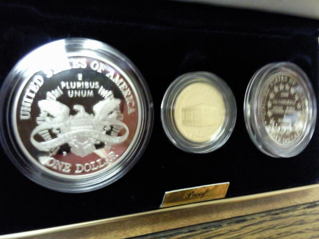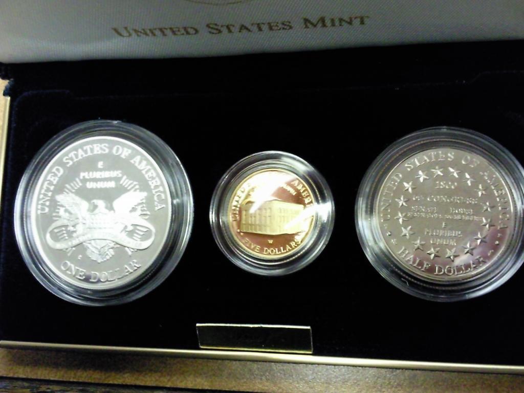 Contains: Clad Half Dollar, Silver Dollar And Gold Five Dollar