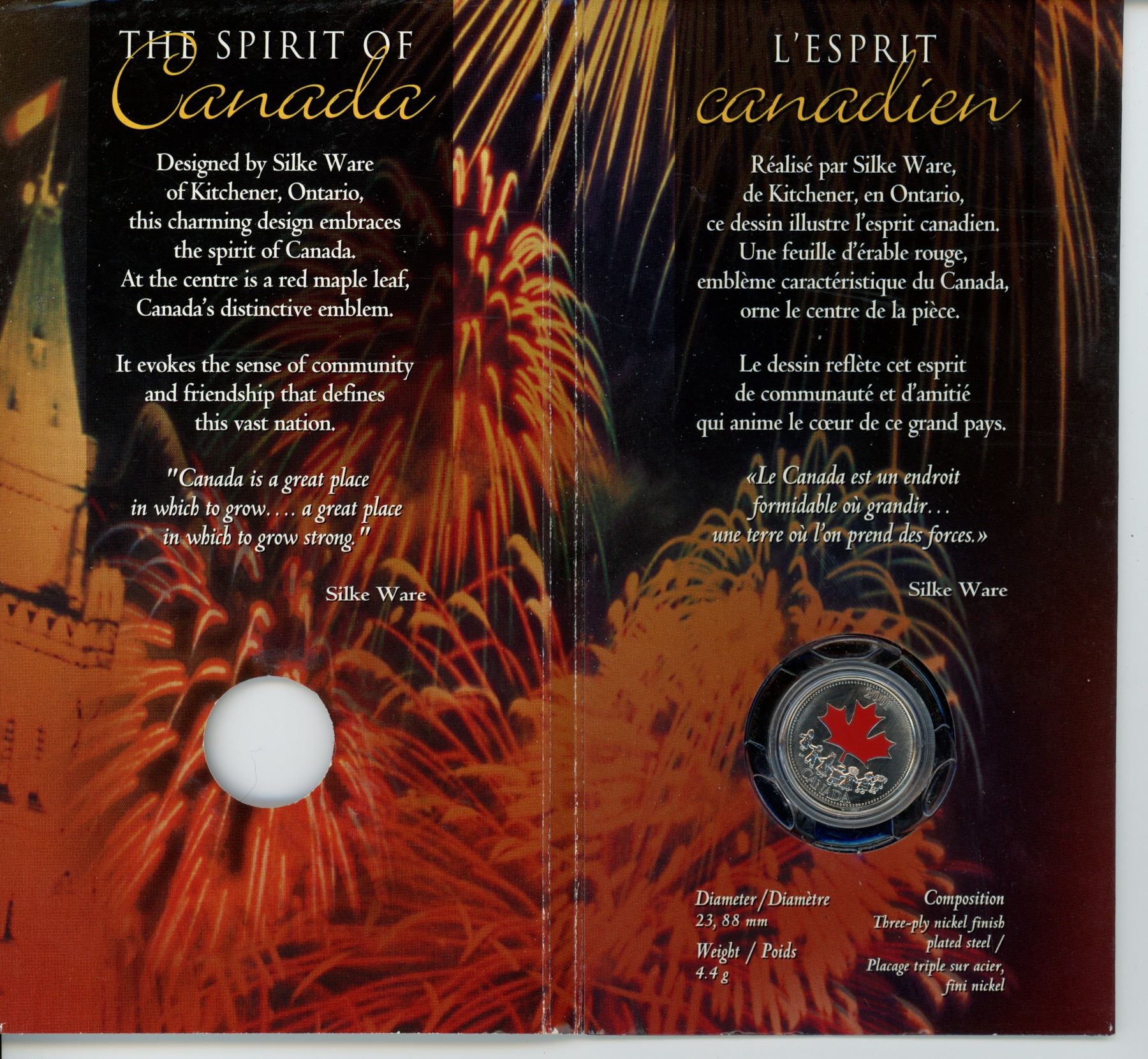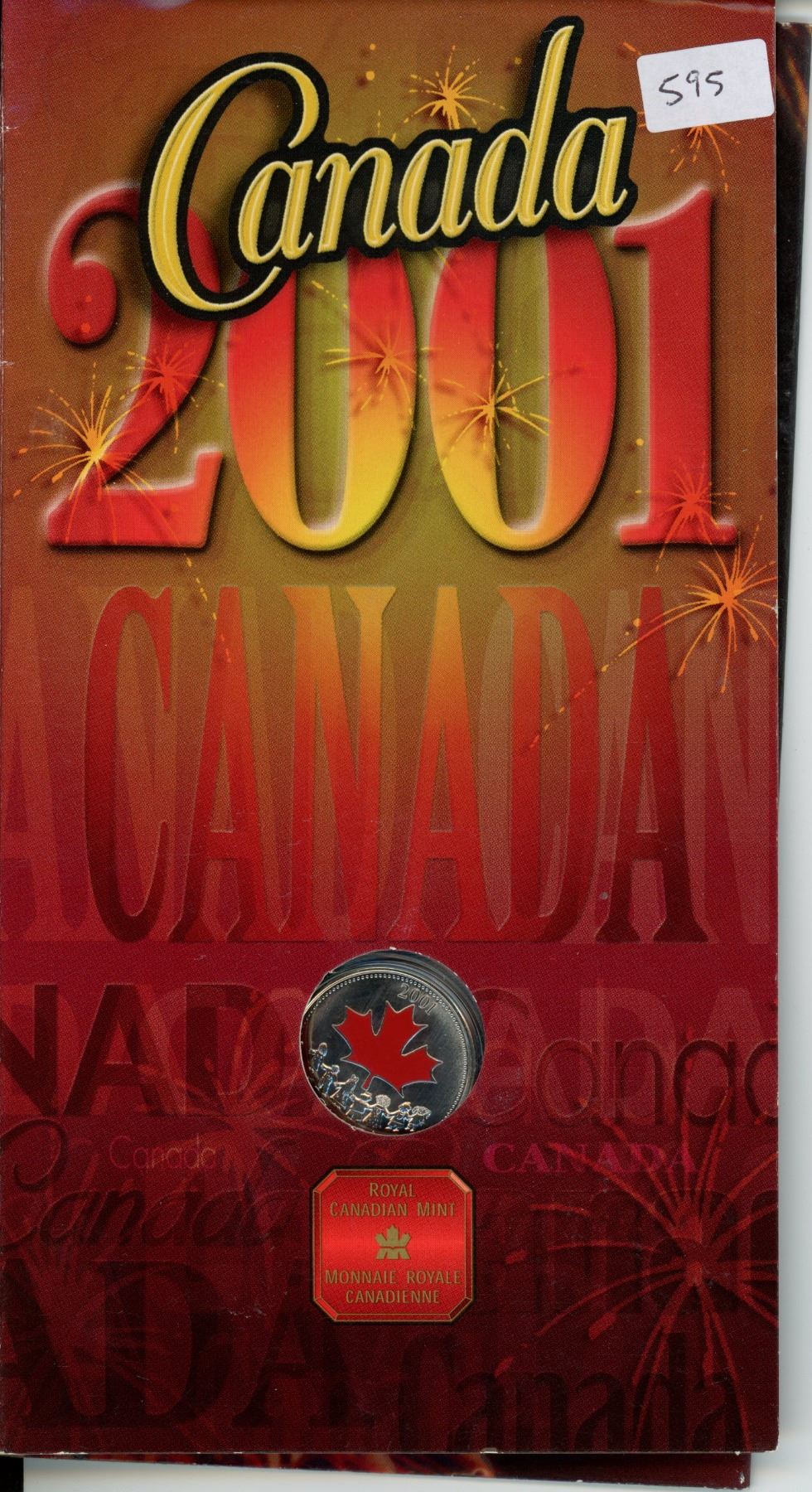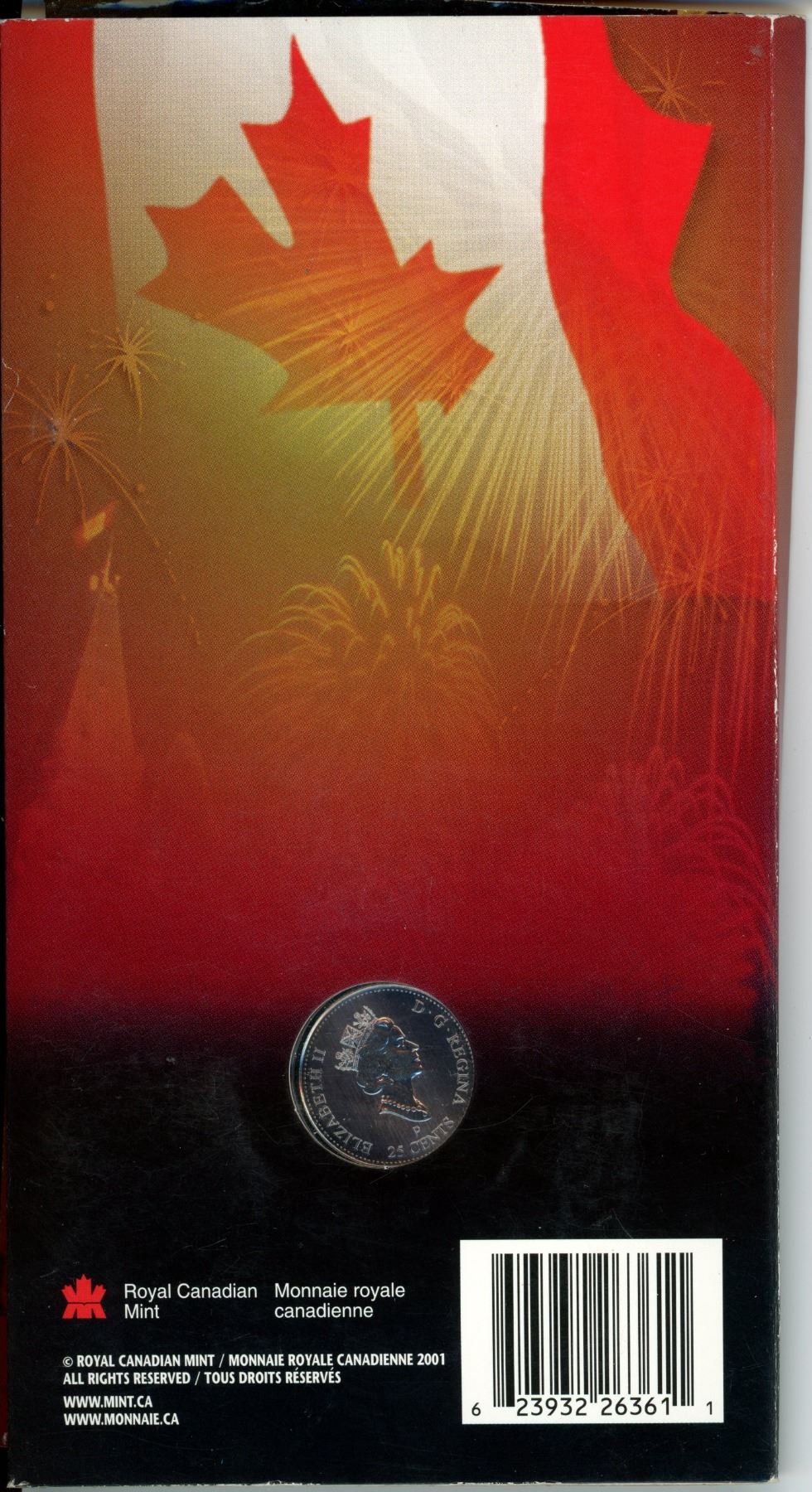 2001 Colourized Canada Day 25 Cents. Housed in its original folder of issue.