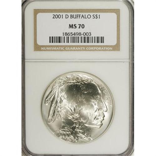 2001-D $1 Buffalo Silver Dollar MS70 NGC. NGC Cens
