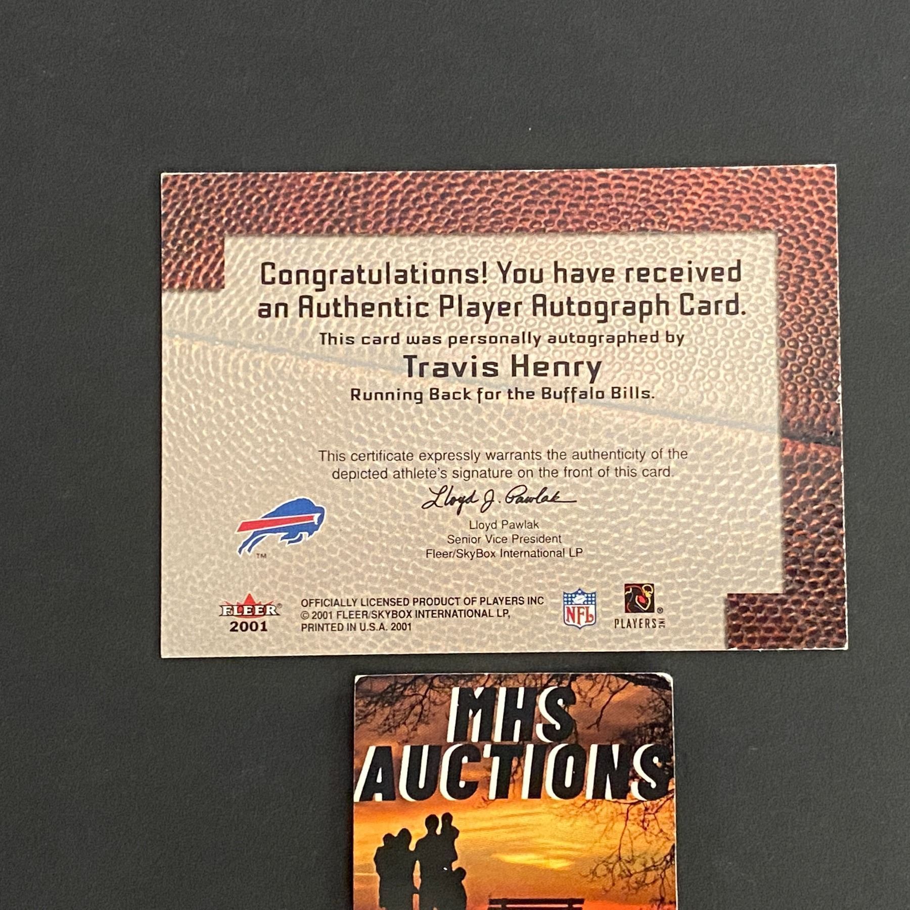 2001 FLEER AUTOGRAPH CARD TRAVIS HENRY FOOTBALL CARD