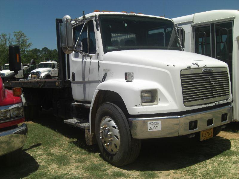 2001 FREIGHTLINER FL70 S/A FLATBED, S/N 1FYABTAK21HH26730, CAT DIESEL ENG, 9 SPD TRANS, P/S, A/C, 20' FLATBED BODY