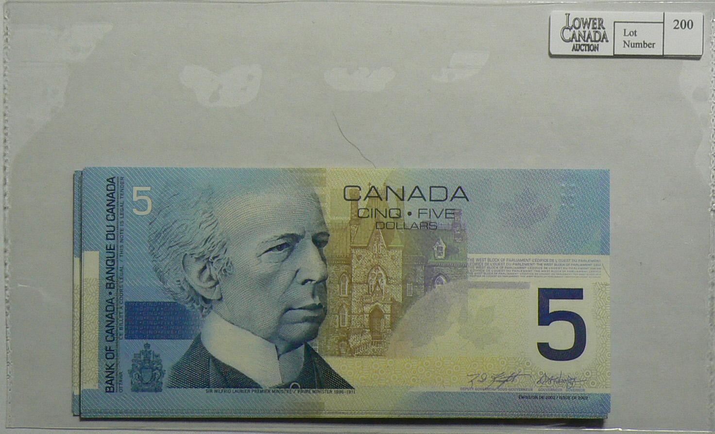 2001 Five Dollars Consecutive lot, BC-62a, GEM UNC, Knight Dodge, serial AOD2566474-75, AOD2662197-98, AOD3976126-27-28, AOD3976182-183, AOD4059091-92, AOD4601178-79 & AOD5115551. Lot of 14 notes.