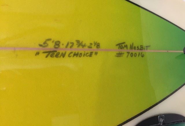 2000 Teen Choice Award Surfboard to choice actor Freddie Prinze Jr. for his role in "Down to You". Signed by Freddie Prinze Jr. This was donated by him to a West Hollywood preschool fundraising auction approximately 12 years ago and has been on home display ever since. "Tom Nesbit #70016 is written in marker on the back). Tom Nesbit, the owner of Morning Glass ( a laminating factory) and shaper/designer of Nezzy Surfboards made all the boards for The Teen Choice Awards. They are real surfboards (5'8"x 18"x6").