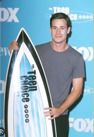 2000 Teen Choice Award Surfboard to choice actor Freddie Prinze Jr. for his role in "Down to You". Signed by Freddie Prinze Jr. This was donated by him to a West Hollywood preschool fundraising auction approximately 12 years ago and has been on home display ever since. "Tom Nesbit #70016 is written in marker on the back). Tom Nesbit, the owner of Morning Glass ( a laminating factory) and shaper/designer of Nezzy Surfboards made all the boards for The Teen Choice Awards. They are real surfboards (5'8"x 18"x6").