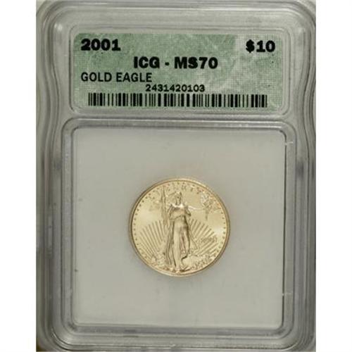 2001 G$10 Quarter-Ounce Gold Eagle MS70 ICG