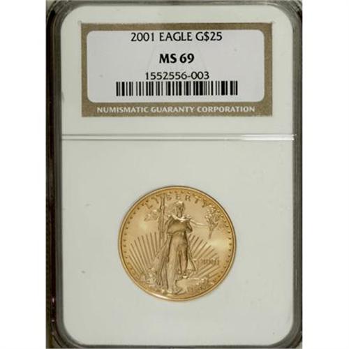 2001 G$25 Half-Ounce Gold Eagle MS69 NGC. NGC Cens