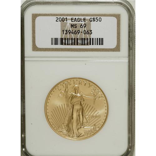 2001 G$50 One-Ounce Gold Eagle MS69 NGC. NGC Censu