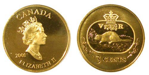 0516 - 2001 Gold Canada 3 cent - ICCS PF67UHC