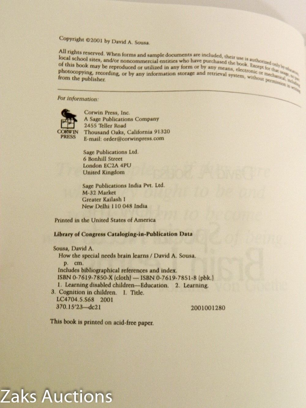 2001 HOW THE SPECIAL NEEDS BRAIN LEARNS - DAVID A. SOUSA. SOFTCOVER