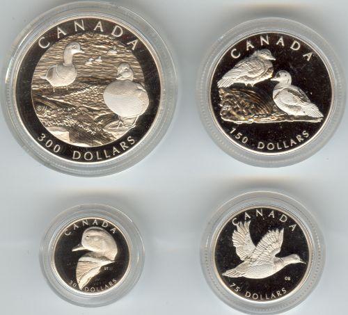 Platinum Set 2001 Harlequin Duck in original Mahogany box with COA. Only 448 sets were produced and they are rarely offered in auction. 1.85 oz of pure platinum.