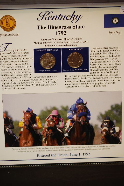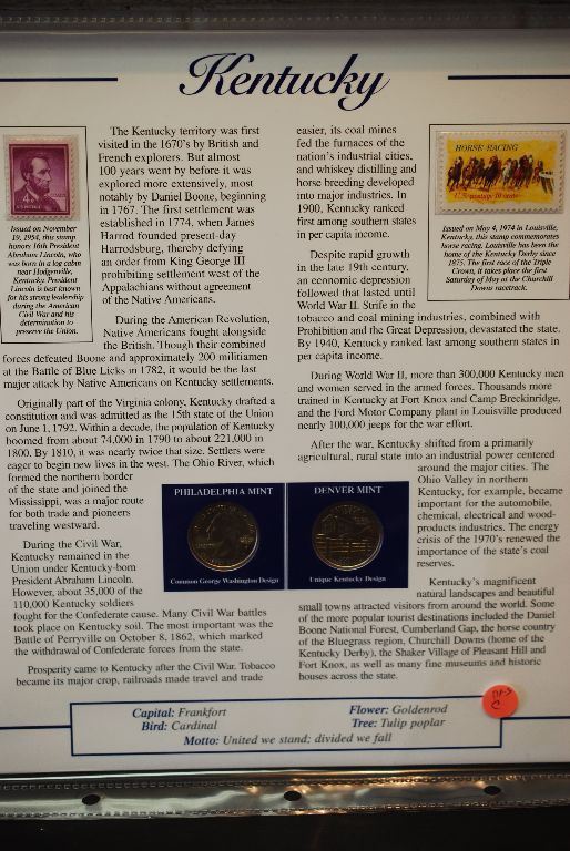 2001 Kentucky State Quarter Coin Set W/US Postal Stamps; P&D Mints; EST. $5-10