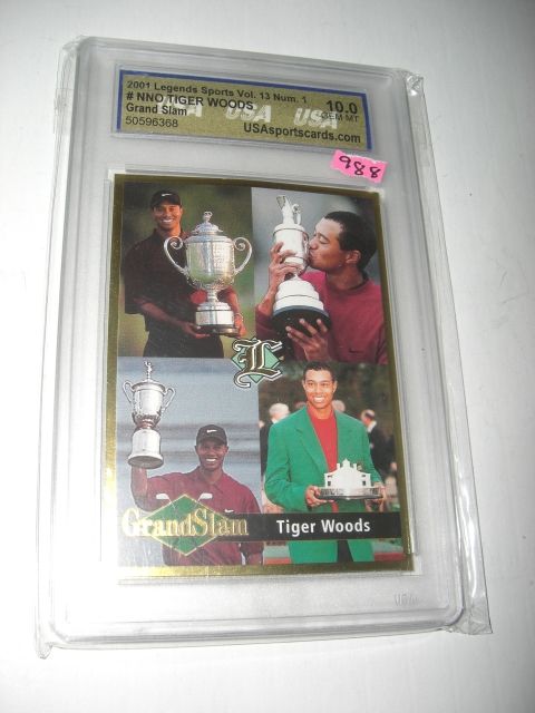 2001 LEGENDS SPORTS VOL.13 NO.1 NNO TIGER WOODS-GRAND SLAM GRADED & CERTIFIED *TIGER WOODS-10.0 GEM MINT* CERT# 50596368!! CARD CAME OUT OF SAFE!! ***Coin, Currency & All Items Listed in this auction - Grades, Conditions and Values are not Safe Deposit Coins LLC Responsibilty. Grades, Condition and Values are determined by Consigner(s) & Buyers ONLY