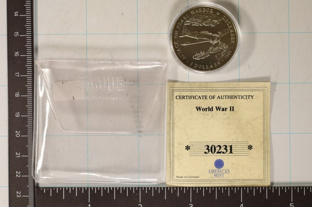 CAPSULE WITH CERT, ATTACK ON PEARL HARBOR DEC. 7TH, 1941