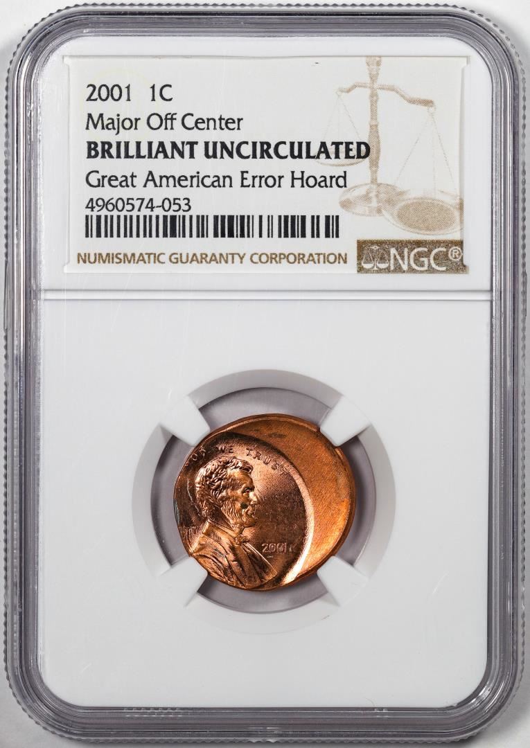 One 2001 Lincoln Memorial Cent Coin Error Major Off Center NGC Brilliant Uncirculated. NGC Certified.