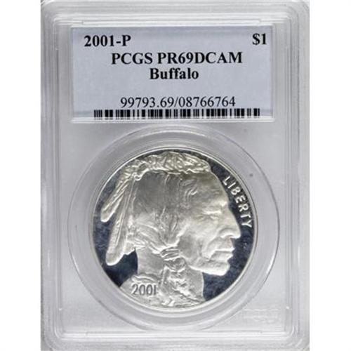 <B>2001-P $1 Buffalo PR69 Deep Cameo PCGS.</B></I> PCGS Population (8846/79). NGC Census: (0/0). Numismedia Wsl. Price for NGC/PCGS coin in PR69: $275. (#99793)<BR><BR><b>Shipping:</b> Coins & Currency (<a target="_blank" href="http://www.heritageauctions.com/common/shipping.php">view shipping information</a>)