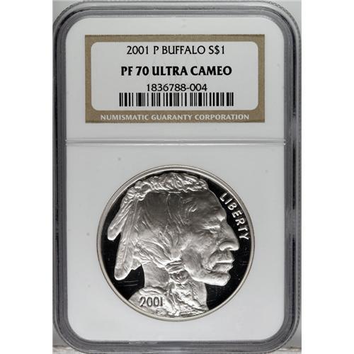 <B>2001-P $1 Buffalo PR70 Deep Cameo NGC.</B></I> NGC Census: (0/0). PCGS Population (168/0). Numismedia Wsl. Price: $600. (#99793)<BR><BR><b>Shipping:</b> Coins & Currency (<a target="_blank" href="http://www.heritageauctions.com/common/shipping.php">view shipping information</a>)