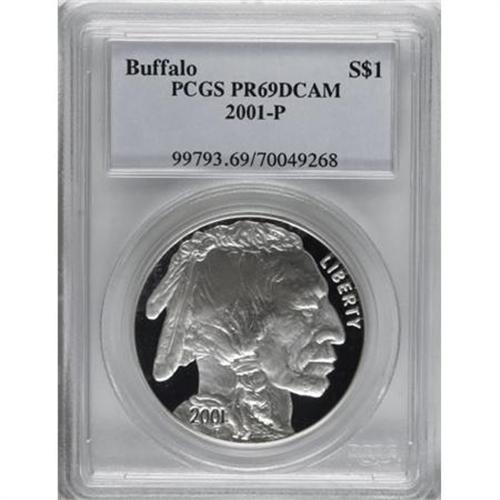 <B>2001-P $1 Buffalo PR69 Deep Cameo PCGS.</B></I> PCGS Population (9371/95). NGC Census: (0/0). Numismedia Wsl. Price for NGC/PCGS coin in PR69: $275. (#99793)<BR><BR><b>Shipping:</b> Coins & Currency (<a target="_blank" href="http://www.heritageauctions.com/common/shipping.php">view shipping information</a>)