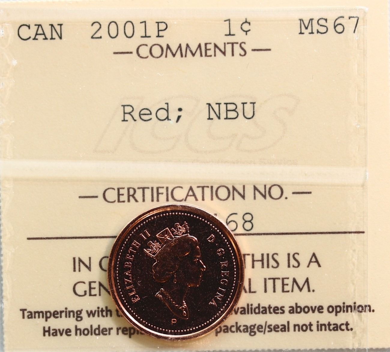 2001-P 1¢ ICCS Superb Gem Mint State-67 Red - NBU