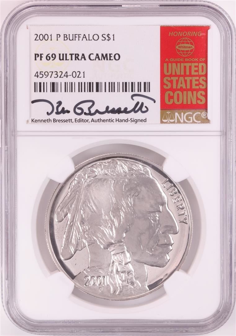 2001-P $1 Proof American Buffalo Silver Dollar Coin NGC PF69 Ultra Cameo K. Bressett