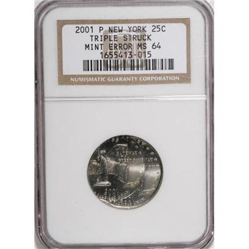 <B>2001-P 25C New York Statehood Quarter--Triple Struck--MS64 NGC.</B></I> <BR><BR><b>Shipping:</b> Coins & Currency (<a target="_blank" href="http://www.heritageauctions.com/common/shipping.php">view shipping information</a>)