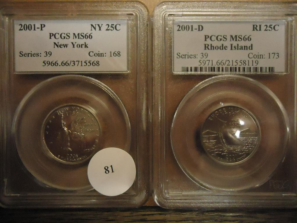 2001-P NY & 01-D RI QUARTERS PCGS MS66'S
