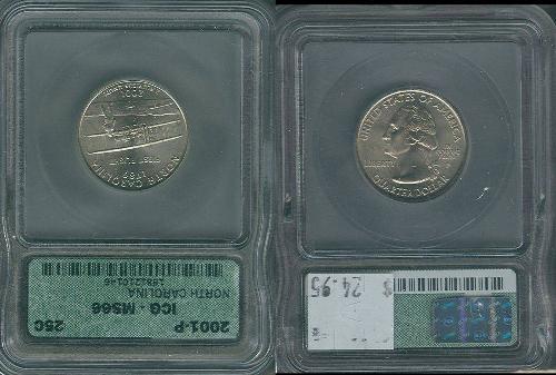 2001-P North Carolina Quarter ICG Graded MS66; Gem circulation dates are hard to find, trends $25