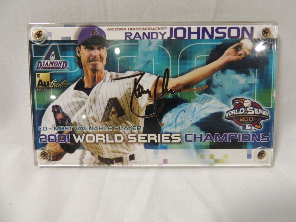 2001 RANDY JOHNSON WORLD SERIES MOST VALUABLE PLAYER. AS SHOWN SEE PHOTO FOR MORE DETAILS.