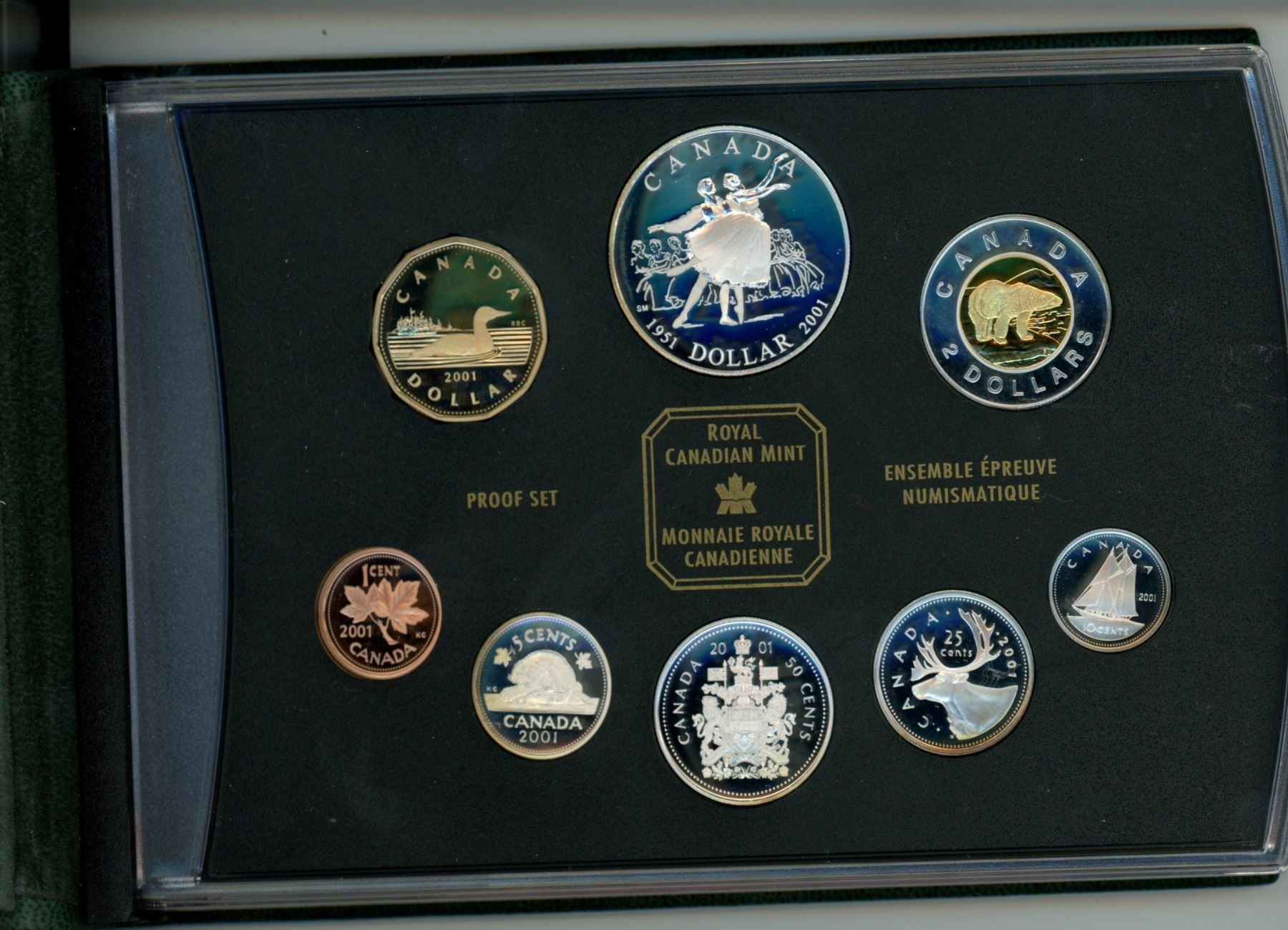 2001 RCM PROOF SET ? NATIONAL BALLET DOLLAR (24 KT GOLD TOONIE INNER CORE)