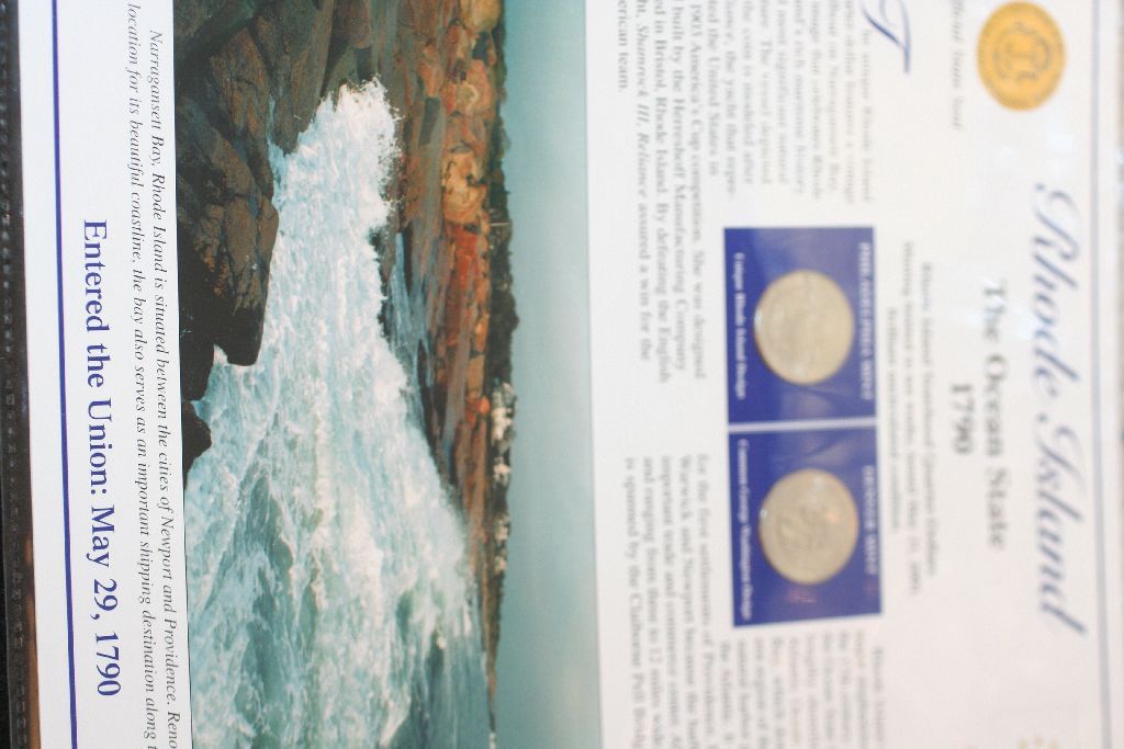 2001 Rhode Island State Quarter Set W/Postal Stamps Commerating 100th Anniversary of Japan World Trade & Touro Synagogue; P&D Mints