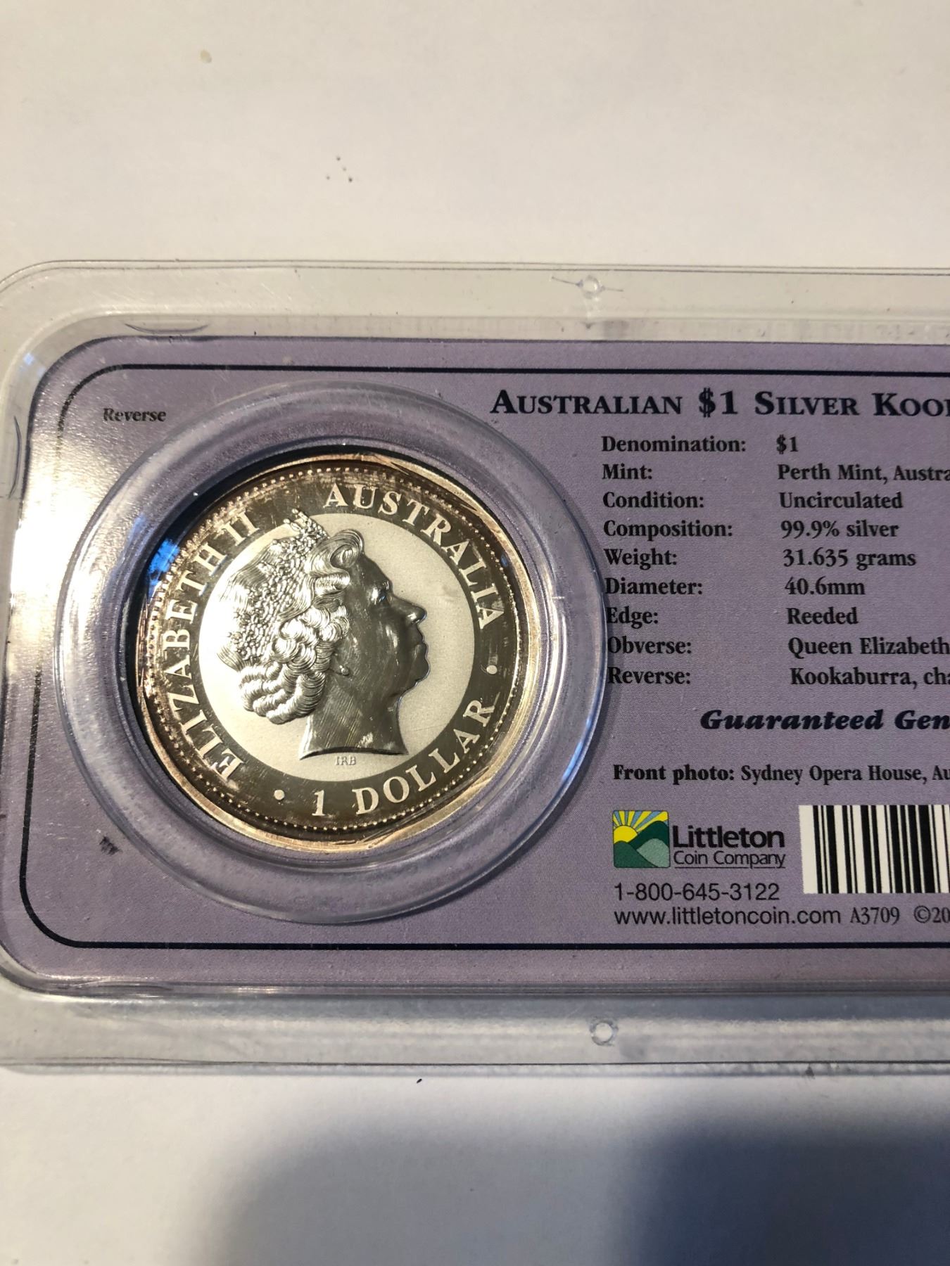 2001 Royal Australian Mint 1 Dollar Kookaburra Series 1oz Silver in Original Package