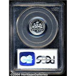 2001-S 10C Silver PR70 Deep Cameo PCGS. Pleasing contrast between the frosty legends and devices and the deeply reflective fields is the hallmark of this pristine and untoned example. The ultimate in quality for the Registry Set collector. Population: 10 in 70 (3/04). <BR><BR><B>Important notice:</B> Heritage usually auctions material at the rate of 200-250 lots per hour. On some occasions eBay Live bid software or the Internet may not be able to keep up with the pace of the auction. We recommend placing a realistic absentee bid now as insurance to avoid disappointment. Occasionally the auctioneer may eliminate or reject an eBay Live bid, and the auctioneer may also reopen a lot after the close of the eBay live bidding (usually because we missed an audience bid), and may reject your bid even if it shows you as the winning bidder. By bidding via eBay Live, you agree that Heritage may award the lot to another bidder at its sole discretion under the circumstances described above or any other reasonable circumstances. Since eBay bids are not shown to us until we open the lot on the floor, we treat those bids just like floor bids. In most cases the floor responds before the eBay bid is presented to us, due to Internet lag time, so for consistency we have made it a policy that floor bids are always considered first over tie eBay live bids. Also please note that all Heritage lots purchased through eBay Live carry a 20% Buyer's Premium. Please make sure you read the Terms and Conditions before you bid. <BR><BR><B>IMPORTANT ANNOUNCEMENT ABOUT RESERVES:</B> Heritage now divulges all reserves on its web site 7 days before every auction. If you want to know whether the reserve on this lot has been met, and if not, what the reserve amount is, please visit this lot page on the HeritageCoin.com web site, or email: bid@HeritageGalleries.com