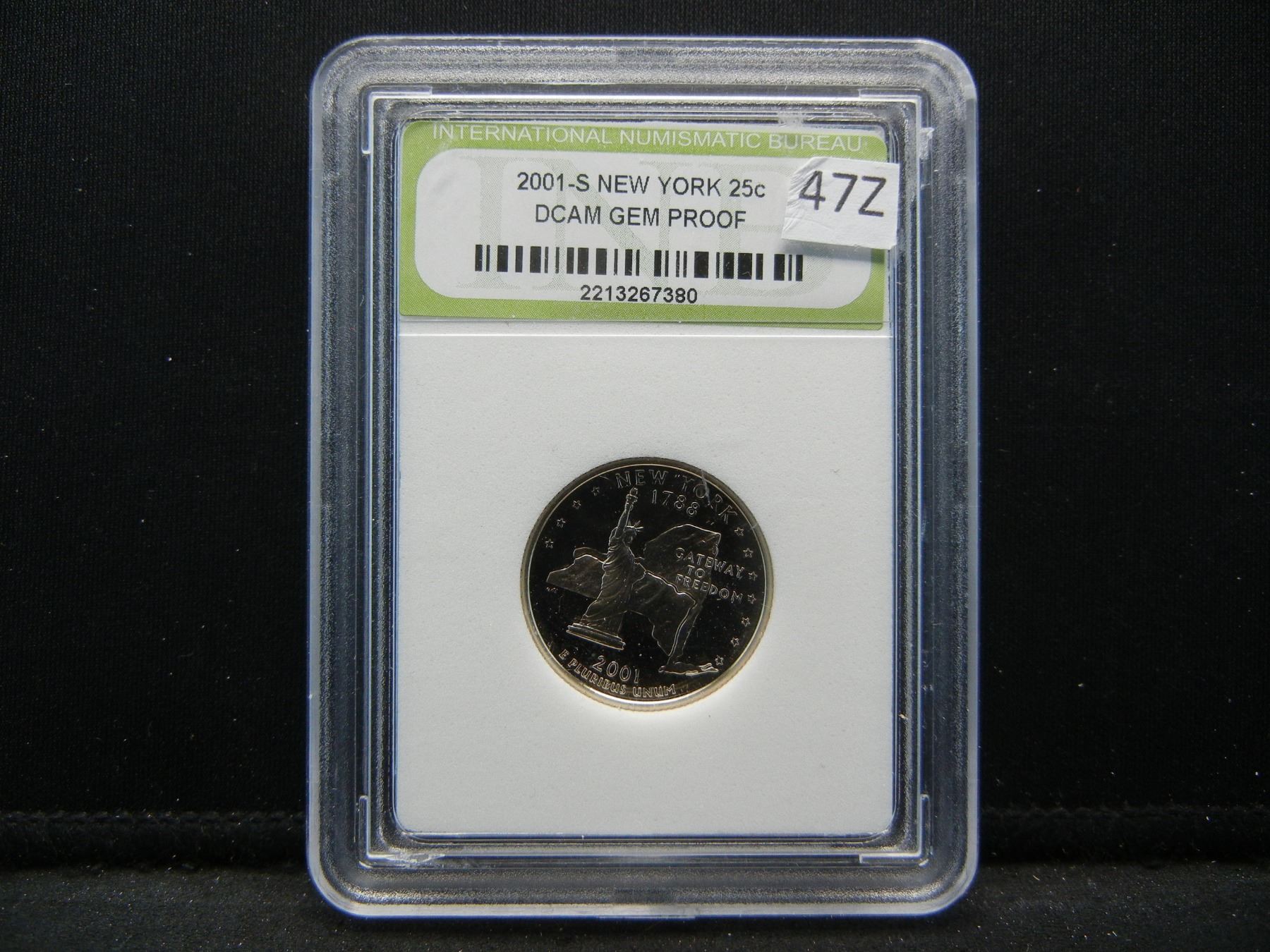 2001 S New York State Quarter DCAM GEM Proof Graded By INB