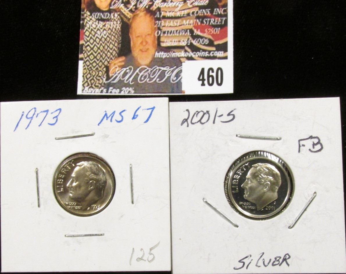 2001 S PR60 and 1973 P MS67 Full Torch Lines Roosevelt Dimes.