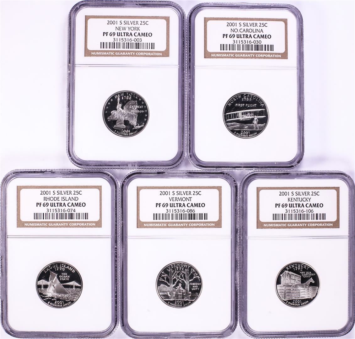 2001-S Silver Proof State Quarter (5) Coin Set NGC PF69 Ultra Cameo