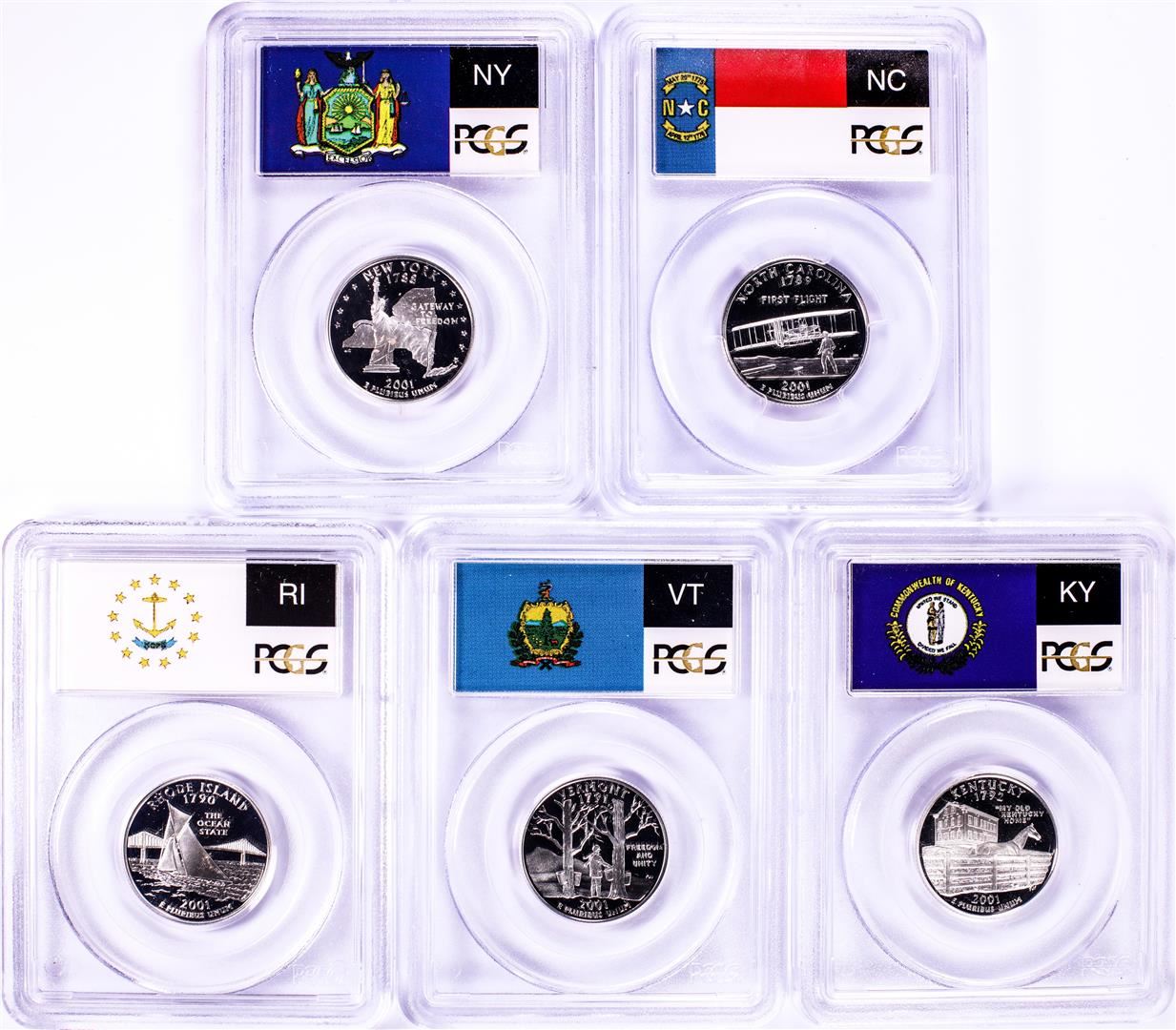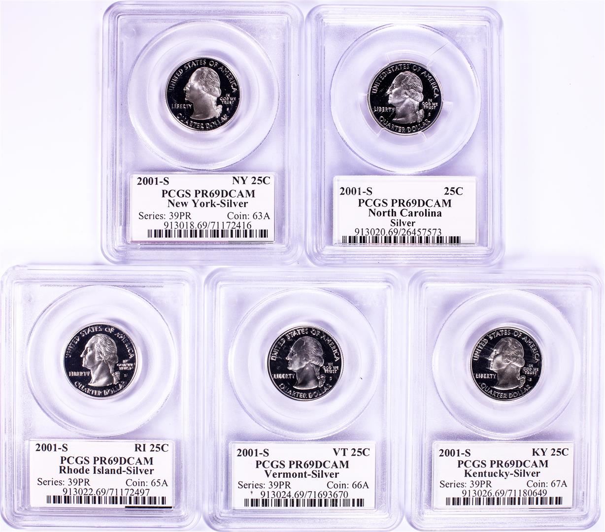 One 2001-S Silver Proof State Quarter (5) Coin Set PCGS PR69DCAM.