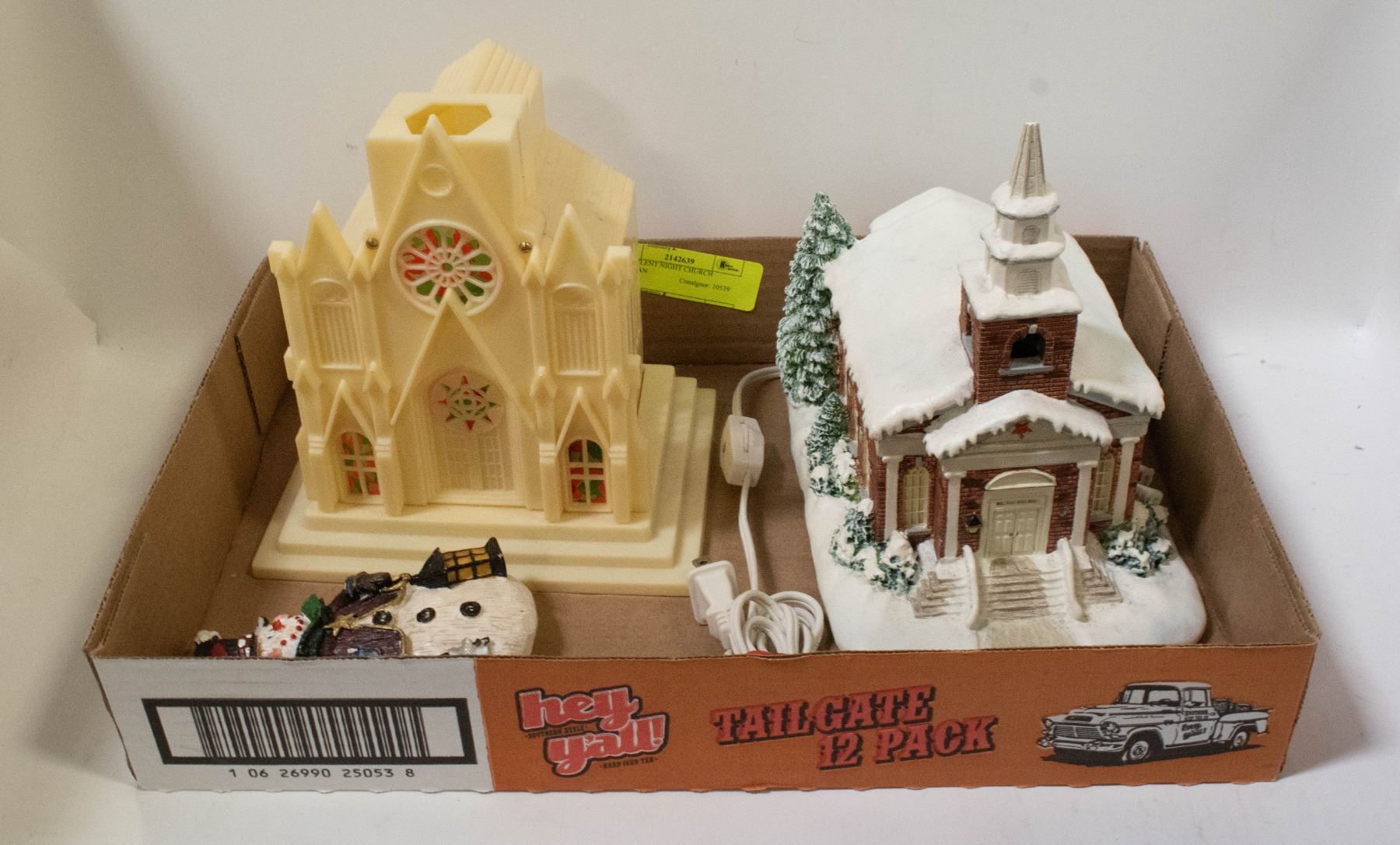 ROCKWELLS CHRISTMAS VILLAGE & 1950'S RAYLITE MUSICAL CHURCH PLAYS SILENT NIGHT, MISSING STEEPLE **ALL ITEMS MUST BE REMOVED BY 5PM SATURDAY, DECEMBER 13TH 2025. ALL REMAINING ITEMS WILL BE SUBJECT TO A $6.00 PER DAY STORAGE CHARGE. ANY ITEMS REMAINING AFTER MONDAY, DECEMBER 29TH 2025 WILL BE CONSIDERED FORFEITED. NO REFUNDS WILL BE ISSUED FOR FORFEITED ITEMS. TO SCHEDULE A PICK UP APPOINTMENT CLICK HERE