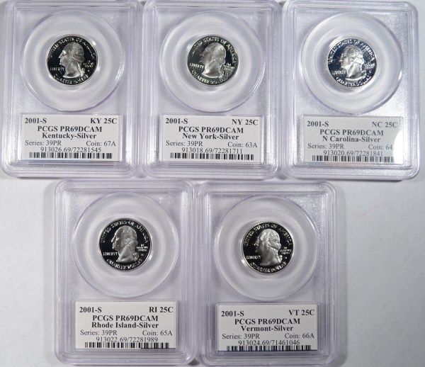 2001 SILVER STATE QUARTER PROOF SET, ALL PCGS PR69DCAM