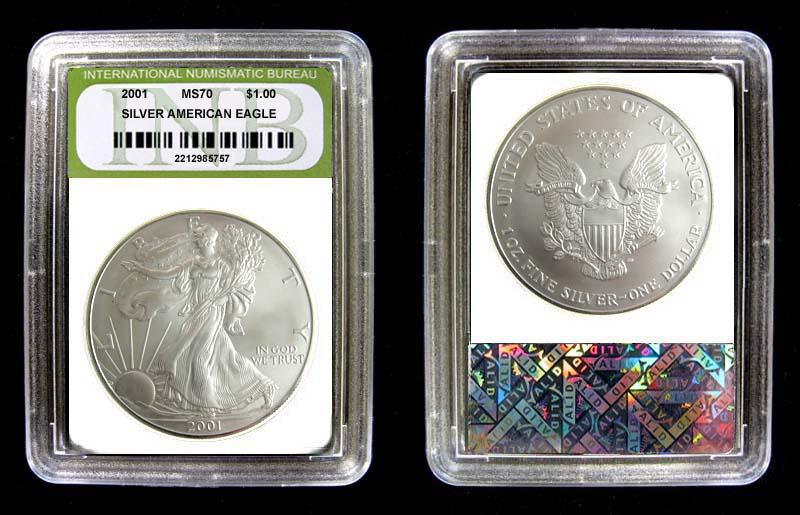 2001 SLABBED SILVER AMERICAN EAGLE HIGHEST GRADE INB GRADED MS70 - You may not receive the exact coin shown, but you will receive one of the same or better quality.