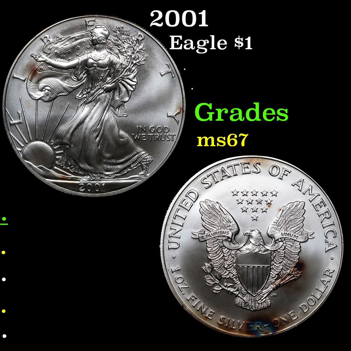 2001 Silver Eagle Dollar $1 Grades GEM++ Unc.
