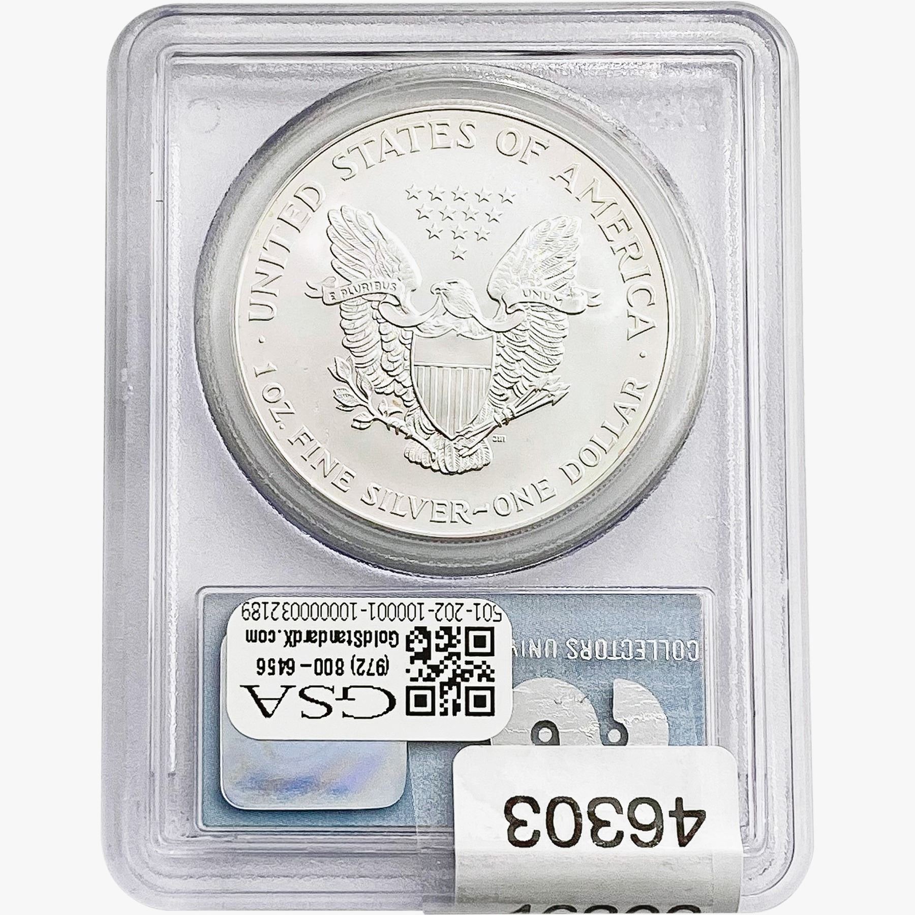 e. Coins sold referencing a third-party grading service are sold “AS IS” without any express or implied warranty, except for a guarantee by GSA that they are genuine. Removal or alteration of the holder, voids all of Bidder’s claims concerning that Product. Certain warranties may be available from the grading services and Bidders are referred to them for further details: Numismatic Guaranty Corporation (NGC), PO Box 4776, Sarasota, FL 34230, www.ngccoin.com/services/writtenguarantee.asp; Professional Coin Grading Services (PCGS), PO Box 9458, Newport Beach, CA 92658, www.pcgs.com/guarantee.html; ANACS, 6555 S. Kenton St., Ste. 303, Englewood, CO 80111; and Independent Coin Grading Co. (ICG), 7901 East Bellview, Ave., Suite 50, Englewood, CO 80111.