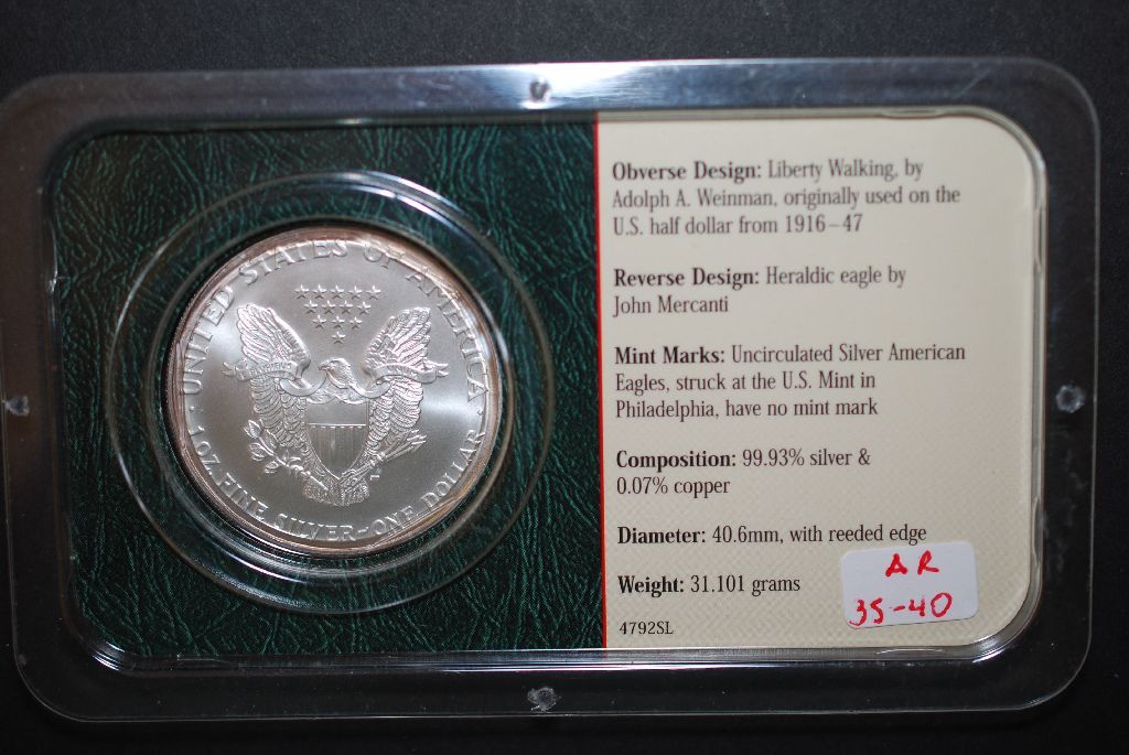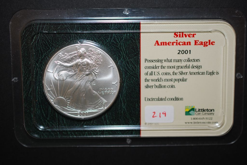 2001 Silver Eagle UNC in plastic fold; 1 oz Fine Silver; EST. $35-40