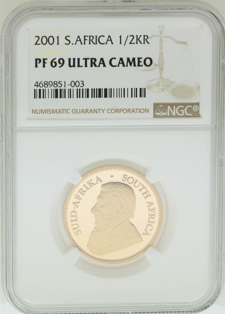 One 2001 South Africa 1/2 Krugerrand Gold Coin NGC PF69 Ultra Cameo. NGC Certified.