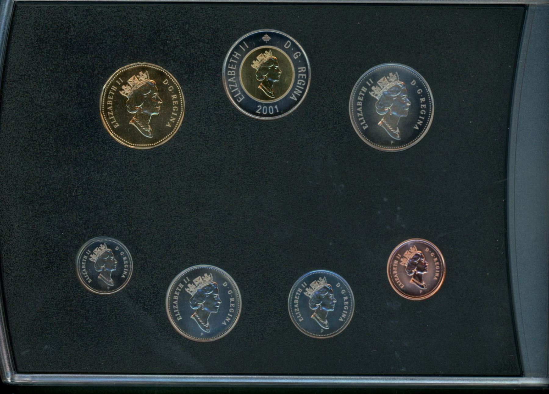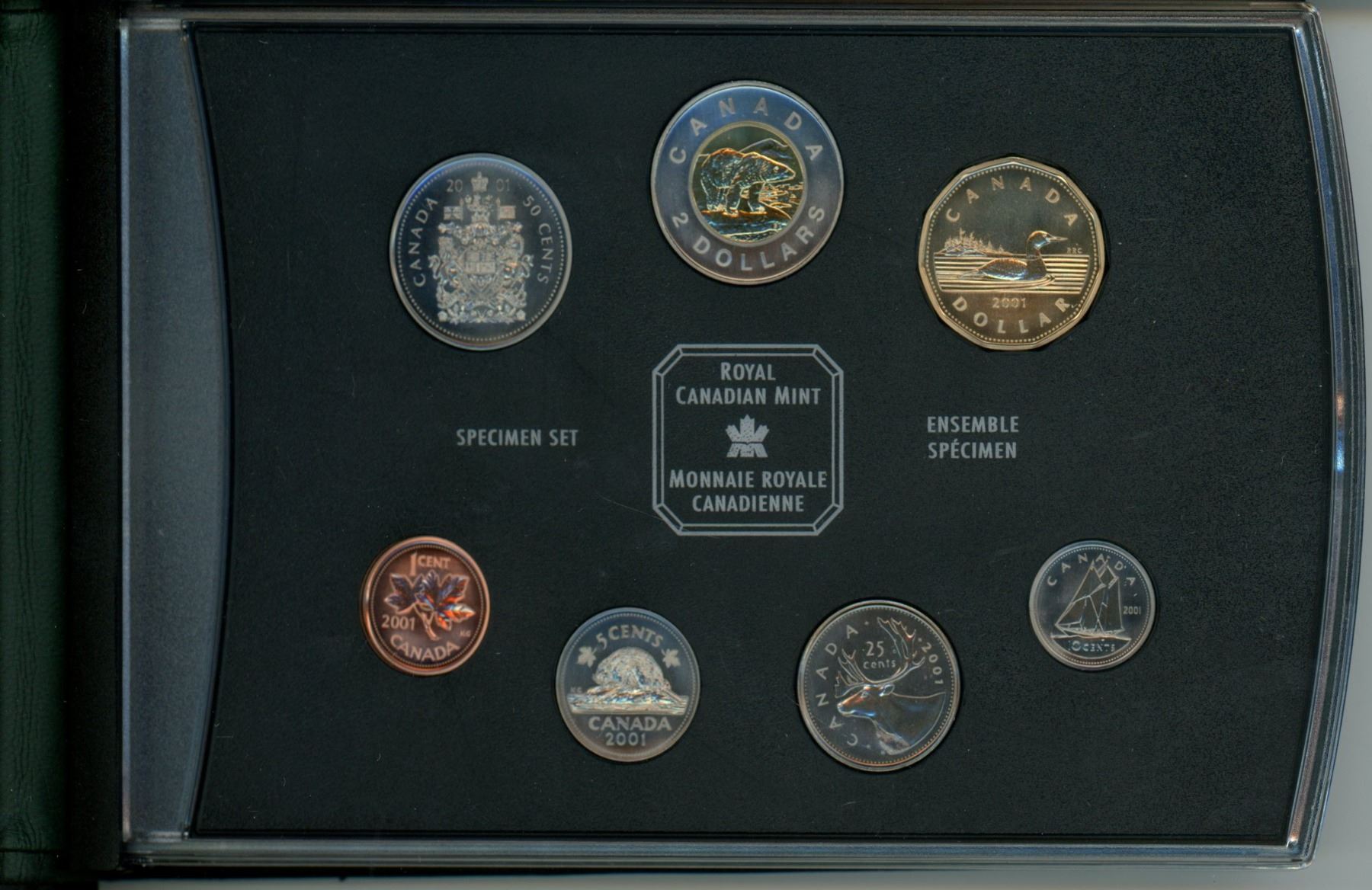 2001 Specimen Set. 7-coin set, all with Specimen Strikes. Housed in its original case of issue.