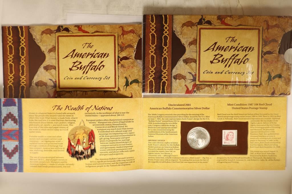 FEATURING A 2001 UNC SILVER AMERICAN BUFFALO DOLLAR, MINT CONDITION 1987- 10 CENT RED CLOUD US STAMP AND A REPLICA OF A 1899 $5 INDIAN CHIEF SILVER CERTIFICATE. IN ORIGINAL US MINT PACKAGING WITH CERT