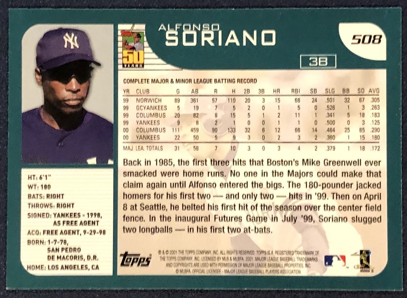 Card #508 MLB, baseball, rookie