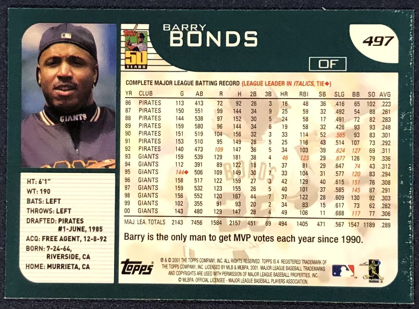 Card #497 MLB, baseball