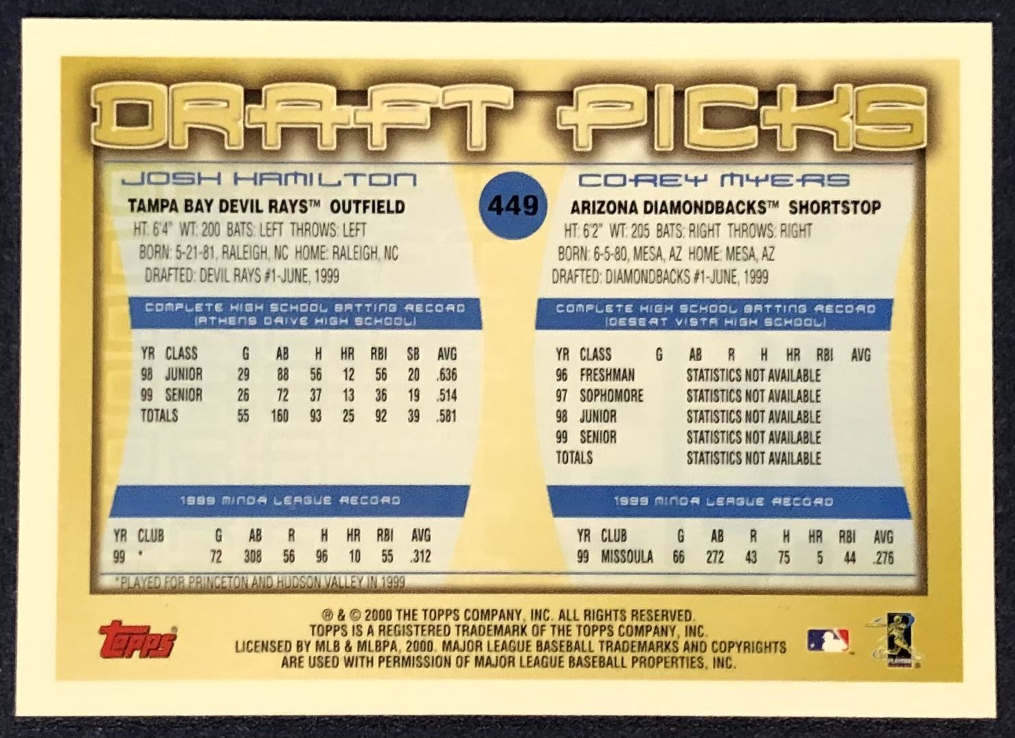 Card #449 MLB, baseball, rookie