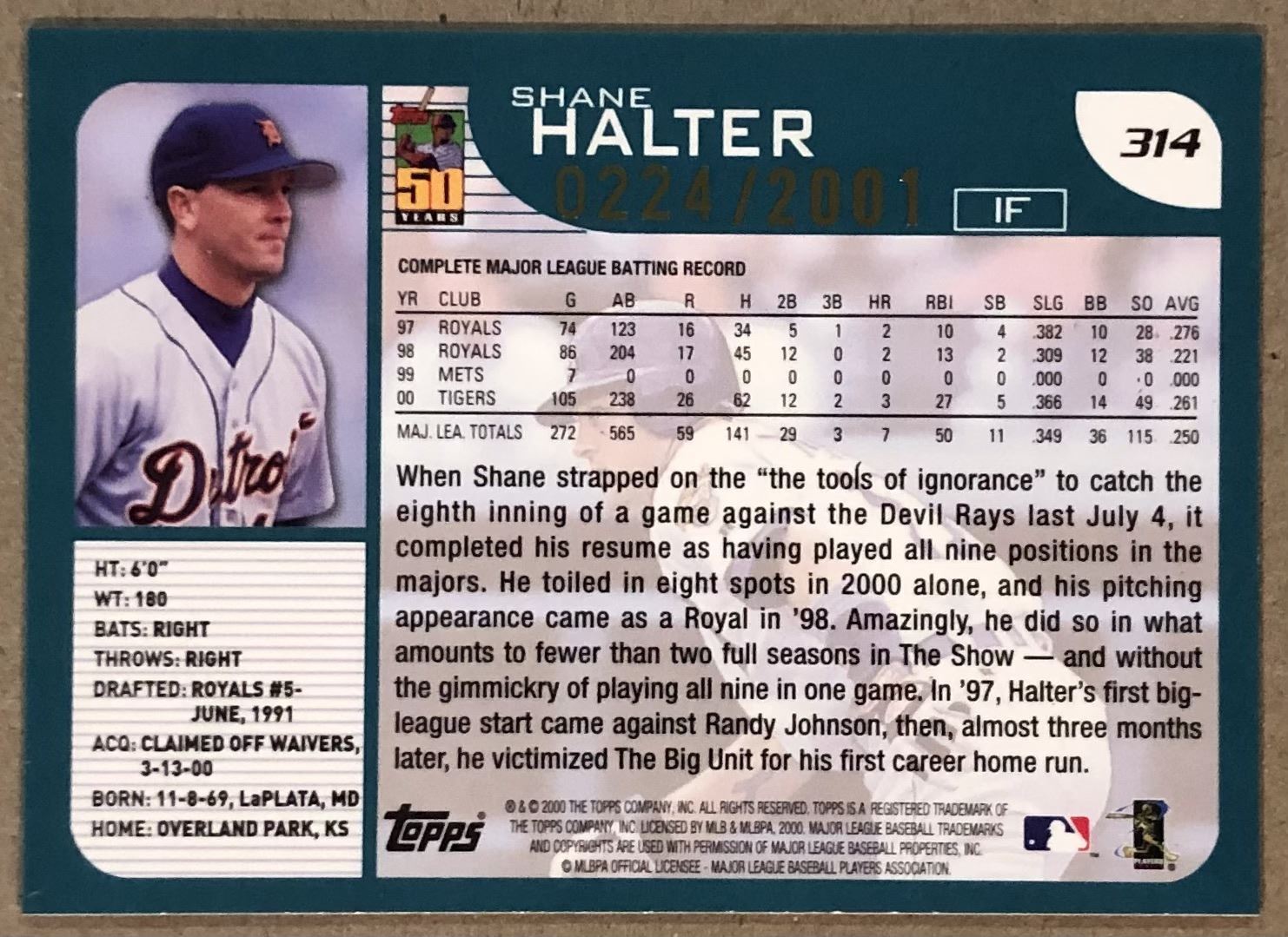 Card #314 (0224/2001) MLB, baseball, hall of fame